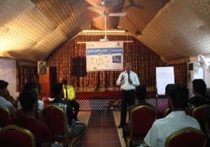 دُشن عصر أمس الثلاثاء 12 إبريل 2016 برنامج “العادات الـ7 للناس الأكثر فعالية” في نادي متطوعون بالمكلا والذي يستمر لثلاث أيام متتالية حيث يستهدف هذه البرنامج طلاب الصندوق ومندوبين الكليات لدى المؤسسة والذي يقدمه المدرب الأستاذ/ أحمد عبدالله بن هامل. يأتي هذا البرنامج ضمن الخطة السنوية لإدارة البرامج والمشاريع بالمؤسسة والذي يهدف إلى إكتساب مهارات التطوير والتحسين بالإضافة إلى تجديد القوة والقدرات في الجسم والروح والعاطفة وكما يهدف لتحفيز طلاب المؤسسة وتوثيق الترابط بينهم. حضر الإفتتاح الدكتور/ هادي الصبان نائب رئيس مجلس الإدارة،الذي توجه بكلمة إلى أبنائه الطلاب حثهم فيها على ضرورة المبادرة للإستفادة من مثل هذه البرامج والدورات التى تعود بالنفع لهم وتحسين مستوياتهم التعليمية.