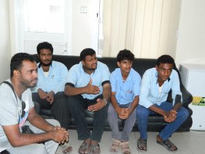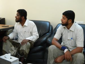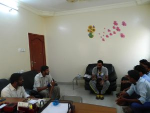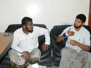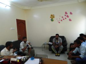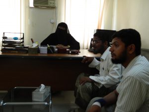 عرّف الأستاذ نبيل عن مجموعة من طلابه الدارسين في المعهد التقني الصناعي بالمكلا قسم علوم الحاسوب كما عرّف عن بعض موظفي إدارة المؤسسة. تم هذا اللقاء مع الأستاذة/ سولاف عبود الحنشي المدير التنفيذي لمؤسسة الصندوق الخيري لطلاب المتفوقين.