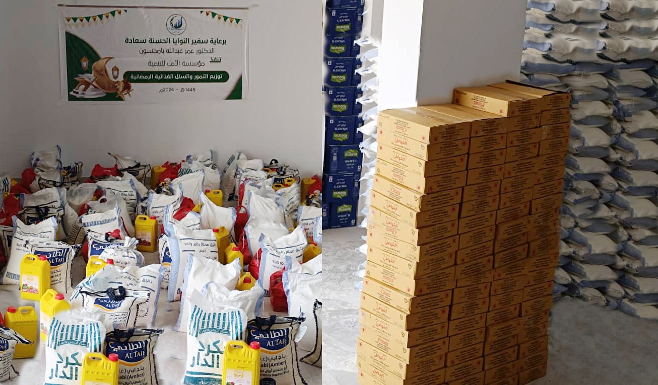 دشنت مؤسسة الأمل للتنمية بروم بالتعاون مع كل من مؤسسة الصندوق الخيري للطلاب المتفوقين المكلا و مؤسسات الامل للطلاب المتفوقين عدن و الطبيب الزائر و الخريجين و تمكين الخريجين ابتداءا من يوم السبت الموافق 9 مارس 2024م حملة توزيع التمور و السلال الغذائية برعاية خاصة من المؤسس سفير النوايا الحسنة سعادة الدكتور عمر بامحسون … و قد صرح المدير التنفيذي لمؤسسة الامل للتنمية بروم ا. عبدالله بازرعة بأن هذه الحملة و التي وصلت الى 500 سلة غذائية تم توزيعها من المدن عدن و المكلا و سيئون انطلاقا من مبدأ الواجب الانساني في القرب من الناس. كما أوضح م. أحمد باحشوان رئيس مجلس ادارة مؤسسة الصندوق الخيري بأن هذه الحملة جاءت بمناسبة حلول شهر رمضان المبارك كمساهمة من مؤسسات الدكتور بامحسون و احساسا بالمسؤولية اتجاه المجتمع….. يذكر أن حملات التوزيع تتم كل عام وفق كشوفات المستفيدين حيث يتم تحديثها بإستمرار، وتكون بتمويل من د.بامحسون وعدد من فاعلي الخير.
