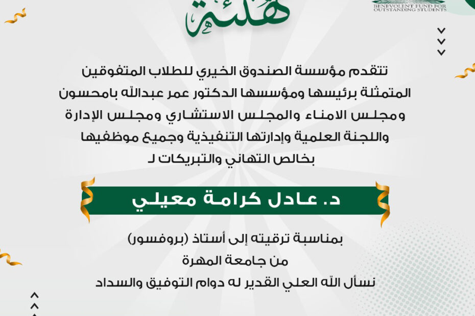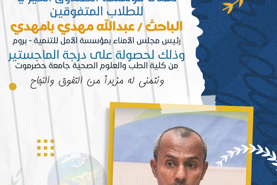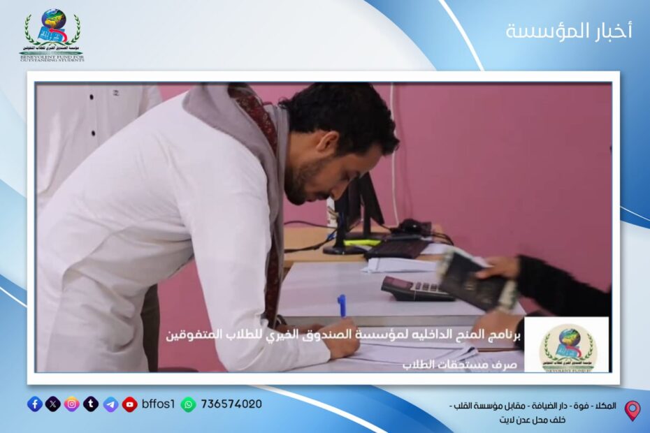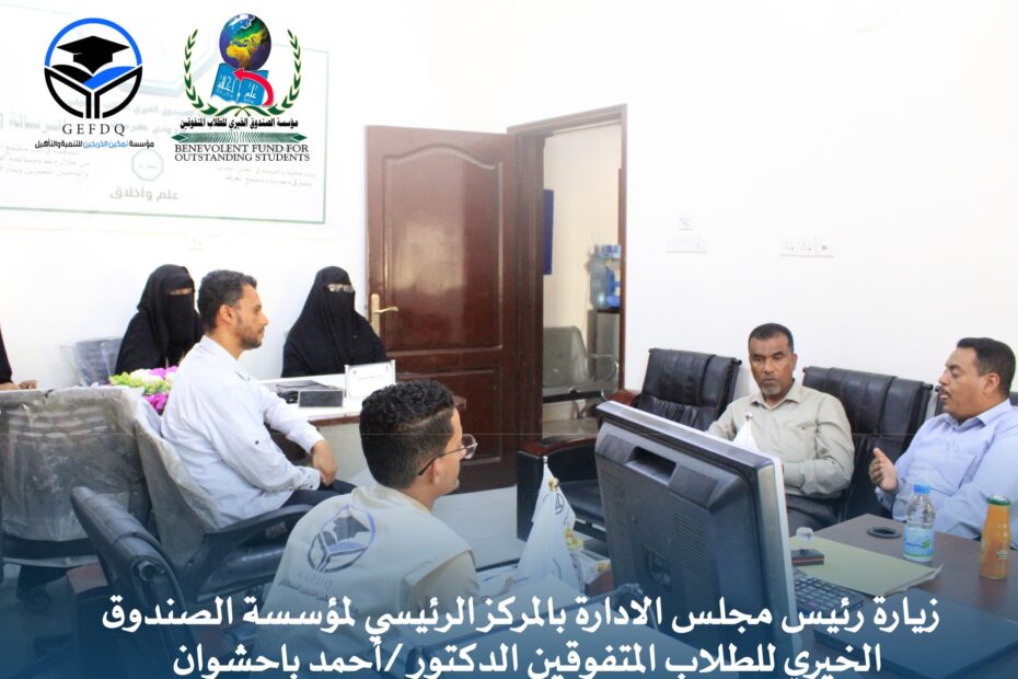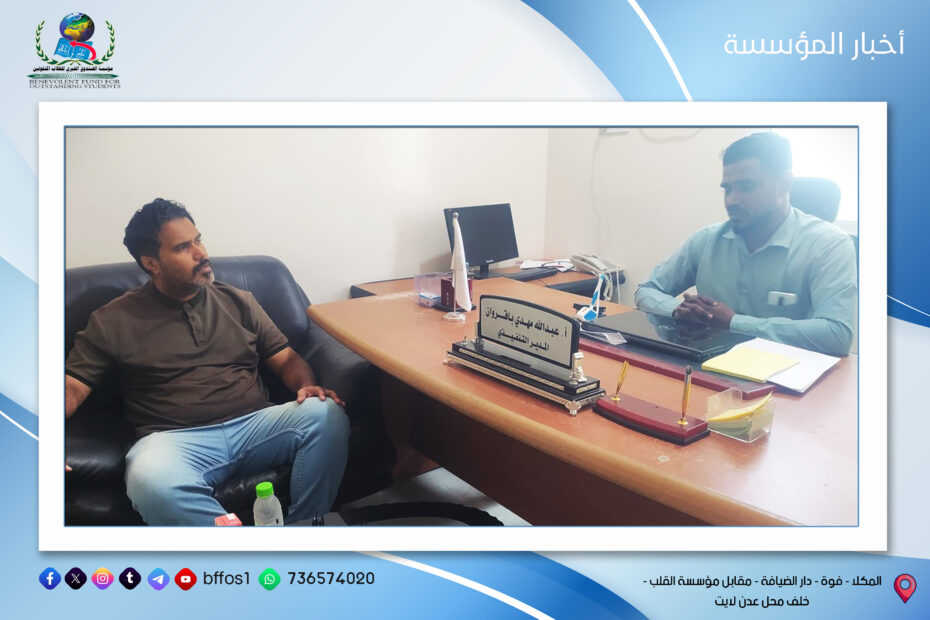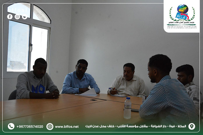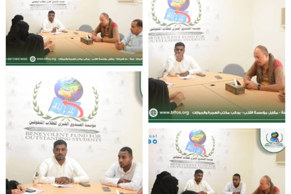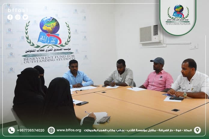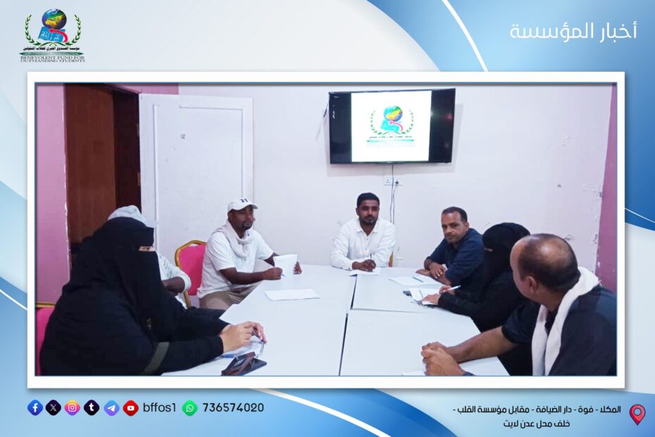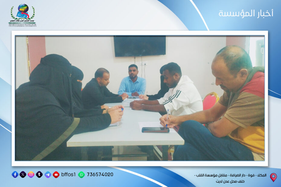 الاثنين 16 يونيو في إطار حرص مؤسسة الصندوق الخيري للطلاب المتفوقين على تعزيز روح الالتزام والانضباط الوظيفي، عُقد صباح يوم الاثنين الموافق 16 يونيو اجتماع… اقرأ المزيد »اجتماع الإدارة التنفيذية بالموظفين بعد عطلة عيد الاضحى المبارك مدينة المكلا | إدارة الإعلام بالمؤسسة