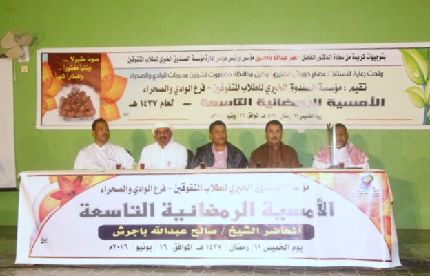 سيئون / جمعان دويل في أجواء روحانية يسودها المحبة والتآلف والوئام وتواصلا مع الجهود التي تبذلها مؤسسة الصندوق الخيري للطلاب المتفوقين احتضن منتجع الماهر… اقرأ المزيد »مؤسسة الصندوق الخيري للطلاب المتفوقين فرع وادي حضرموت تقيم الأمسية الرمضانية التاسعة بمدينة سيئون