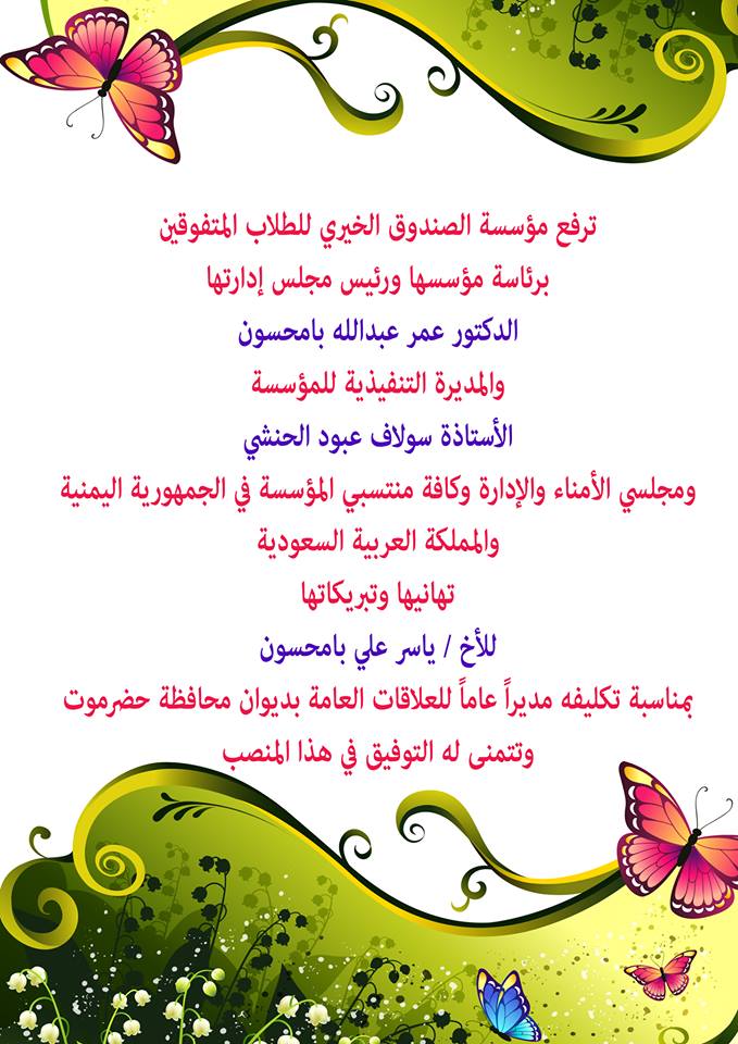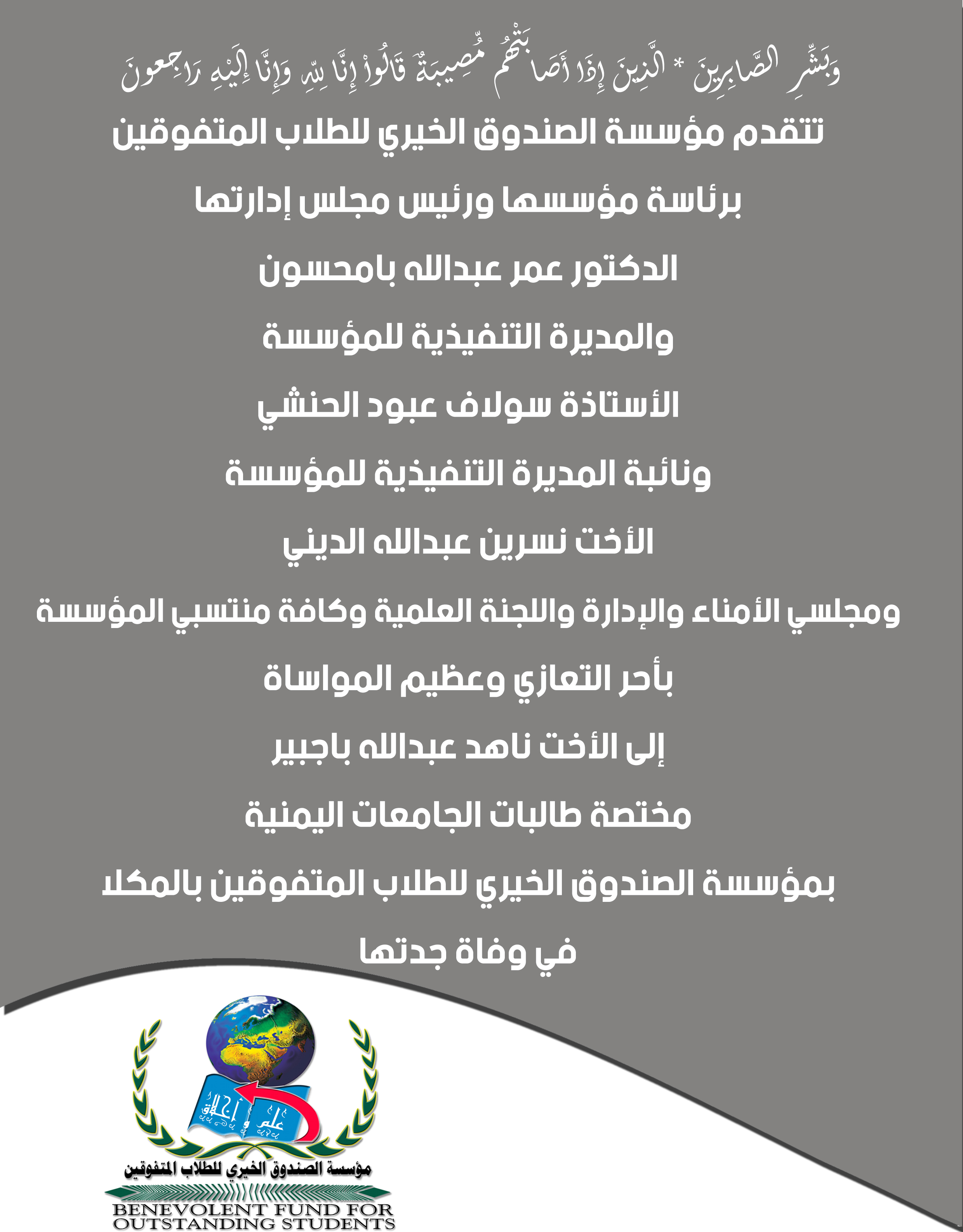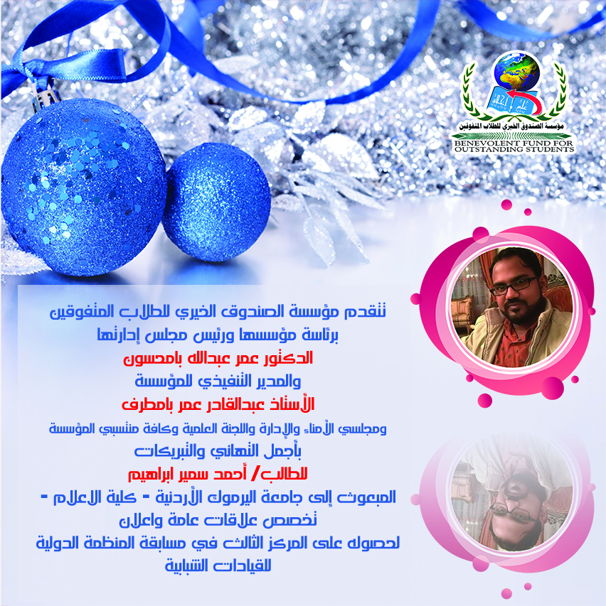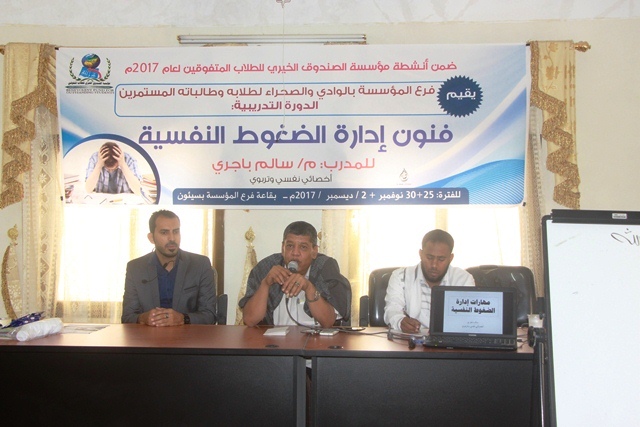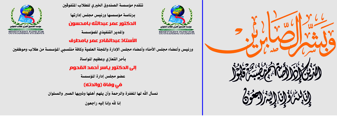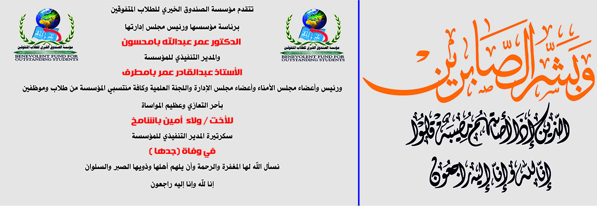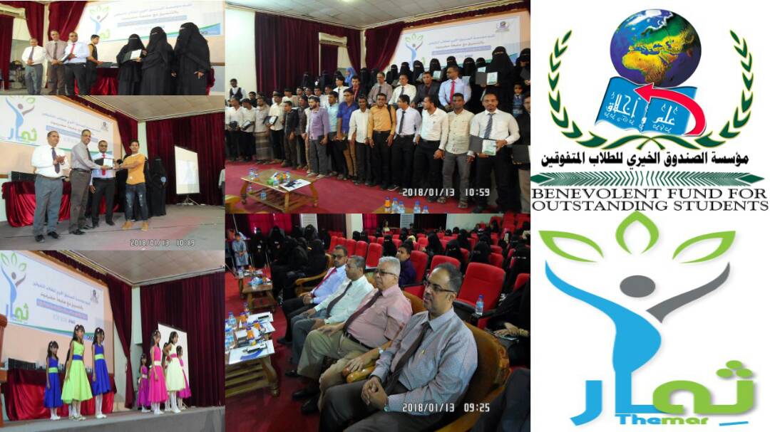 المكلا / اعلام الصندوق الخيري السبت / 13يناير2018م أقامت مؤسسة الصندوق الخيري للطلاب المتفوقين حفل (ثمار) الأول لتكريم الطلاب المتميزين، وكذا الطلاب الذين نالوا المراتب… اقرأ المزيد »مؤسسة الصندوق الخيري للطلاب المتفوقين تقيم حفل (ثمار) لتكريم (130) طالباً وطالبة متميزاً في برنامج المنح الداخلية