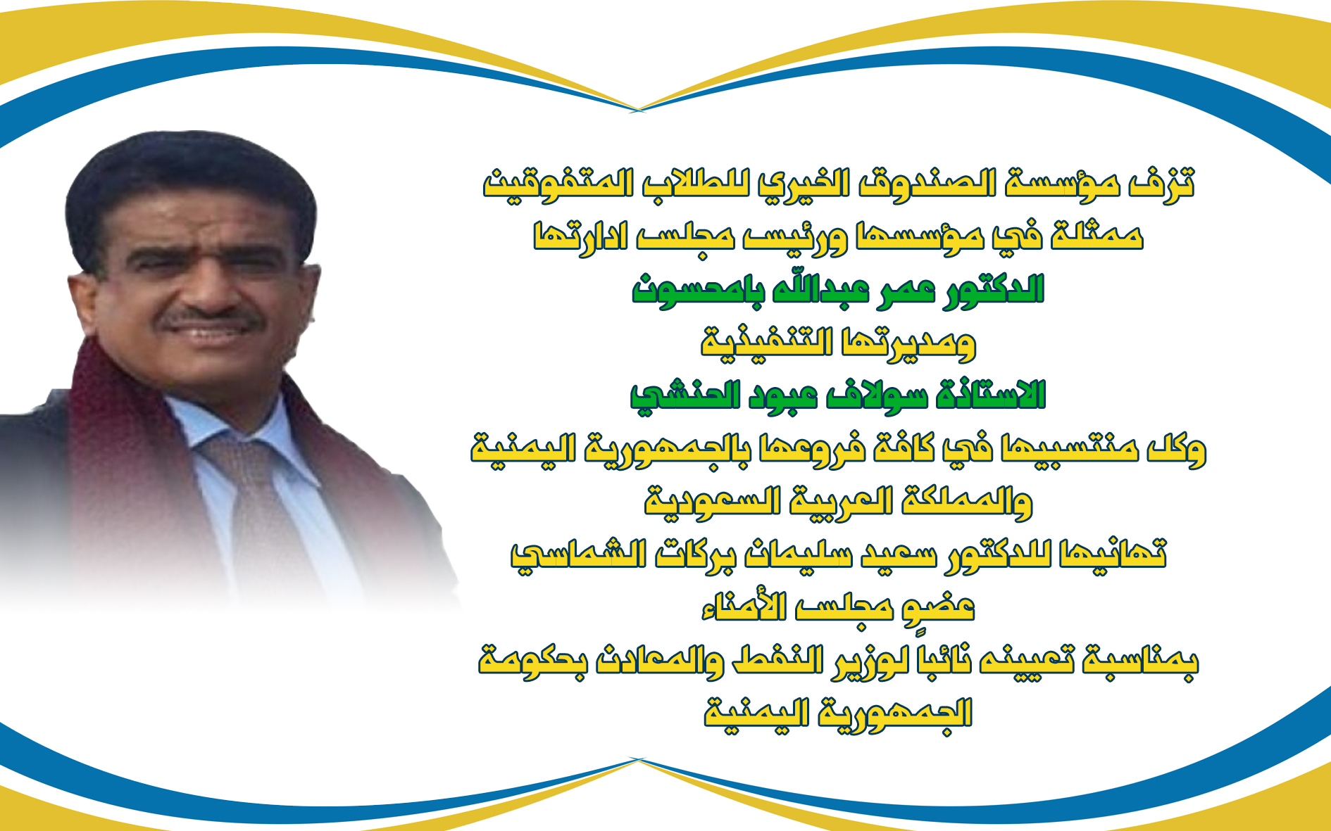 تكريم مؤسسة الصندوق الخيري للطلاب المتفوقين في شخص الدكتور عمر عبدالله بامحسون من جامعة حضرموت