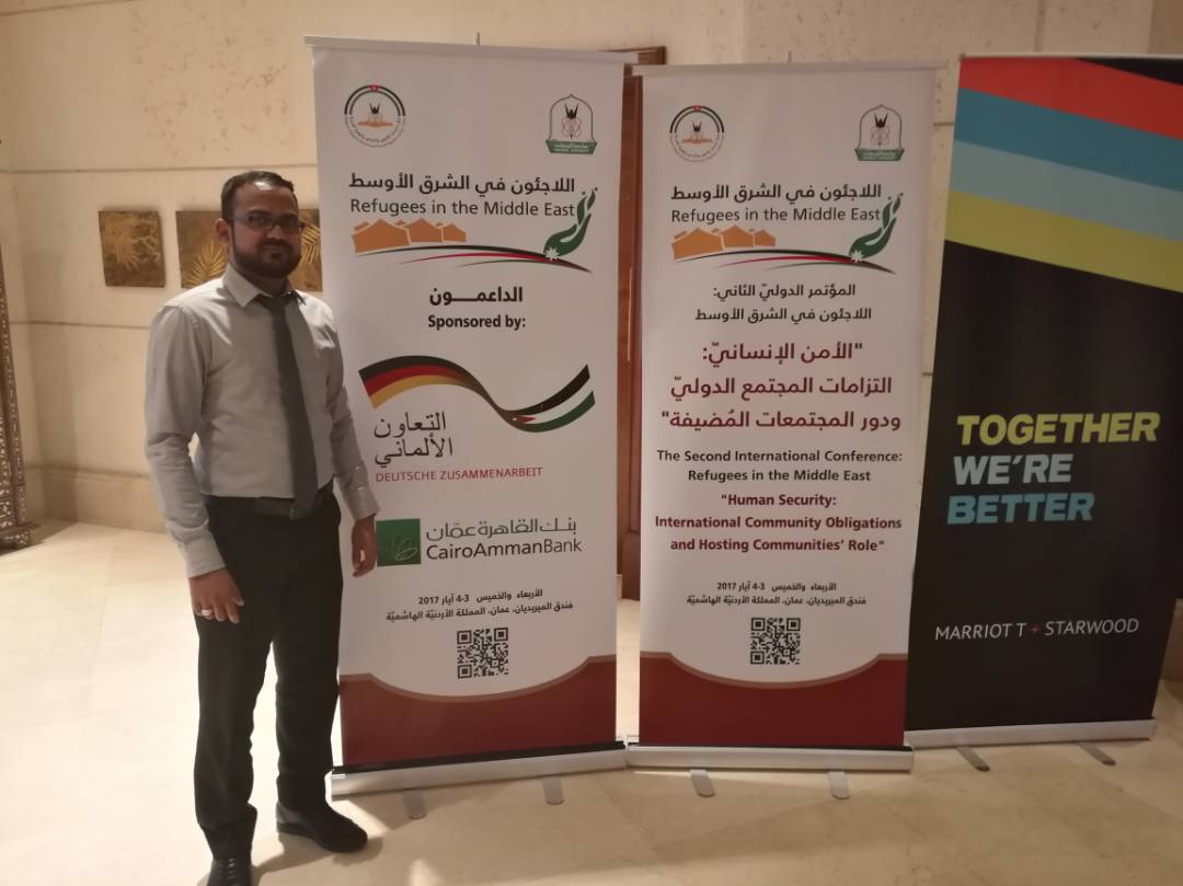 أحد طلاب مؤسسة الصندوق الخيري للطلاب المتفوقين يشارك في المؤتمر الدولي حول اللاجئين بالأردن